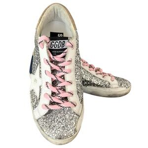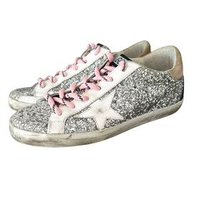 Golden Goose Superstar Suede Glitter Low Top Leather Sneakers Silver Ice Women’s