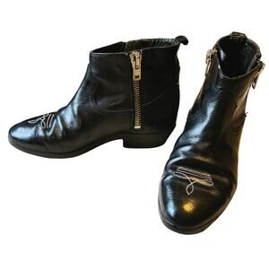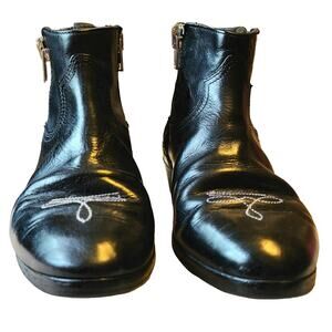 Tags: black boots zipper ankle cowboy modern chic Italy casual elegant leather cowhide soft classic luxury rich fall winter punk euphoria funky goth round toe festival indie coachella mom college western edgy dark academia moto streetwear dark grunge cowboy cowgirl