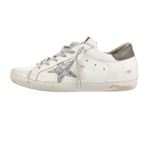 Chic sneakers with a white base and silver star detail. Stylish and comfortable for everyday wear.