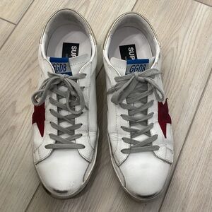 Golden Goose White/gold/red Leather Superstar Low Top Sneakers Size 42