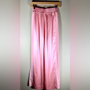 satin, crepe, no appliqués, solid color, high waisted, elasticized waist, wide leg, comfort fit, multipockets, pocket with zipper, dry clean, do not tumble dry, do not bleach