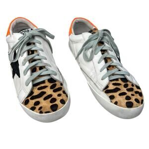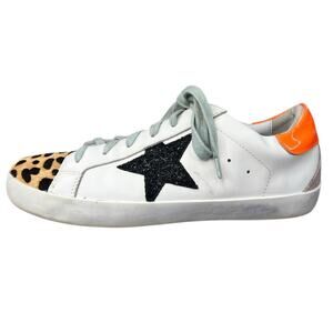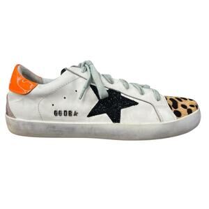 Golden Goose Women’s White Leather Leopard Black Star Sneakers Size 41 US 11