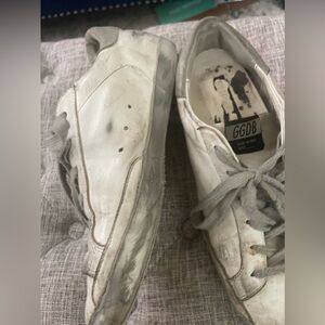 Used Golden goose leather sneakers, with silver accents! These are used, and will need the soles repaired! Prices to SELL