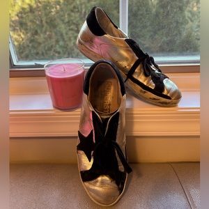 Golden Goose superstar sneakers. Still sold in stores at full price! Size 38. Distress marks are original and part of the design. Silver and black combo is easy to wear with everything. Have been re soled with vibram and there is some wear at the heels. Selling at a huge discount! This brand keeps increasing retail prices.