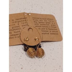Add a touch of natural elegance to your look with these beautiful Art da Terra Eco-Brazilian dangle earrings. Handcrafted from golden grass, these earrings are a unique and sustainable accessory. Perfect for adding a bohemian flair to any outfit, they're lightweight and comfortable for all-day wear.