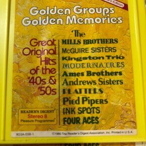 This 8-track tape set features classic hits from the 1940s and 1950s by renowned groups. Enjoy timeless tracks from Reader's Digest's curated collection.