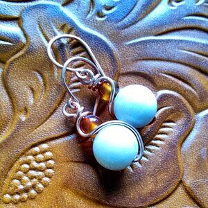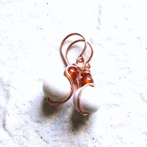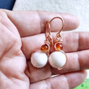 If you love unique Earrings that lean into your feminine essence, you might just enjoy this handmade pair of shorter dangle earrings created with orange/russet Agate and a creamy white Stone beads and a simple but elegant copper wire wrapped design.
