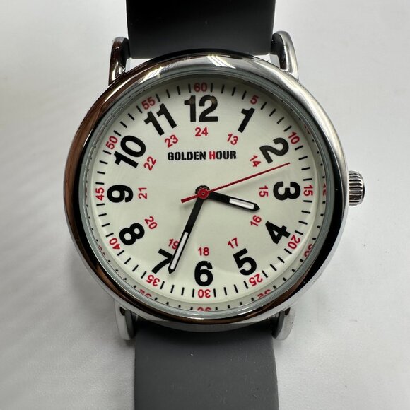 Golden Hour Nurse Watch Women Silver Tone Grey Silicone Band New Battery