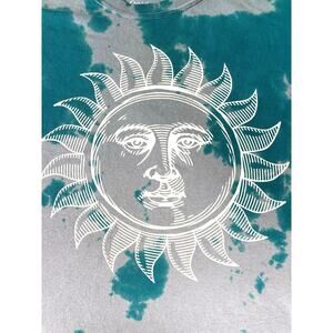 Blue + gray tie-dye short sleeve tee with large sun graphic on the front and moon graphic on the back. One size, 100% cotton.