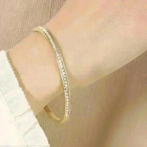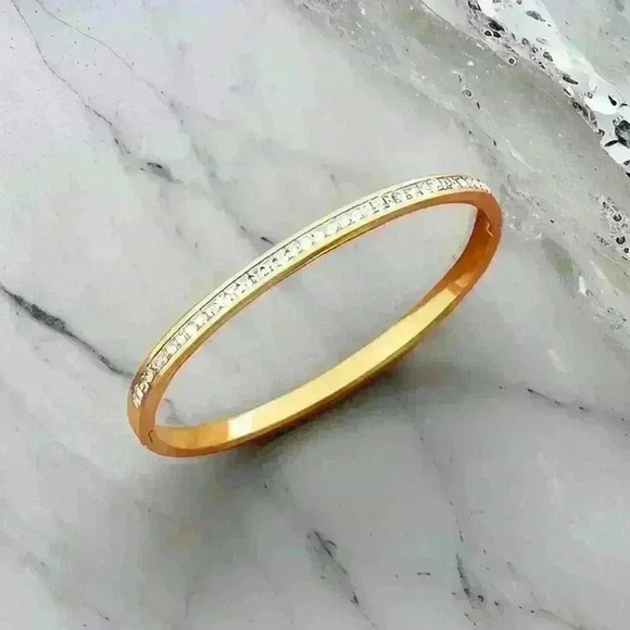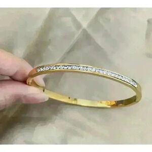 This bangle is made of 18K plated stainless steel and is adorned with inlaid zircon for a touch of elegance and Rhinestones