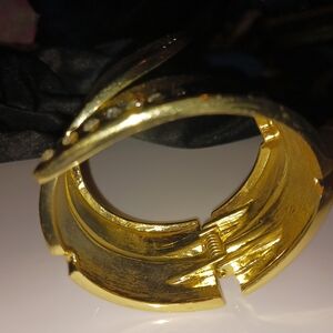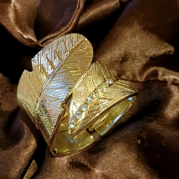 Cuff bracelet with row on rhinestones oh leaf inspired arm candy