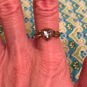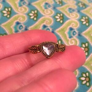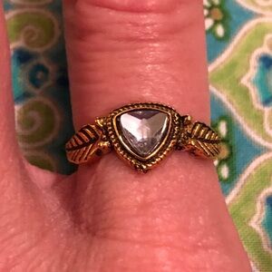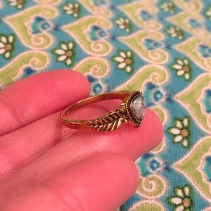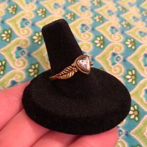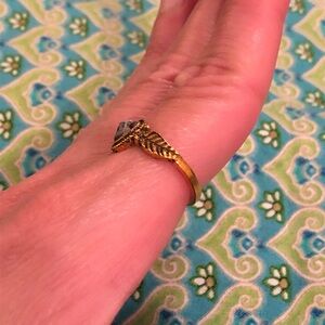 Golden Leaf With Rhinestone Diamond Shape Design Ring