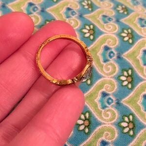 Elegant golden ring with a rhinestone diamond design centerpiece, featuring intricate leaf designs. Perfect for adding a touch of sophistication to any outfit.