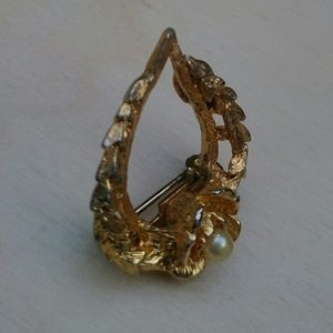 Gold leaf pin. Flower centerpiece with pearl in the middle, framed by leafy wreath design🌻 Try an offer!😊