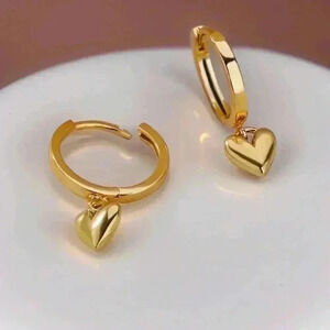 These Golden Plated Heart Pendant Hoop Earrings are the perfect blend of elegance and durability.