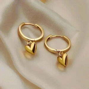 Made of stainless steel, they feature a delicate hoop design with a charming heart pendant.