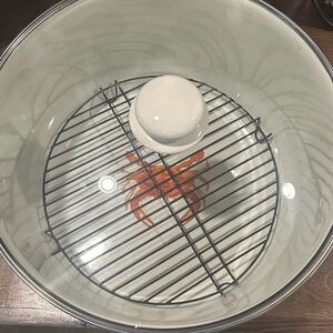 The is a beautiful New 18 Quart stockpot by Golden Rabbit. This pot has an insert where you can use it as a steamer also. It is acid resistant, will not stain, it has carbon for induction cooking and it can go up to 550° on any surface without damaging it. This pot can be used in the oven, and ceramic tops, grill, gas, and propane as long as you do not go up more than 550°. It will look the same as always. Is this is an amazing product
