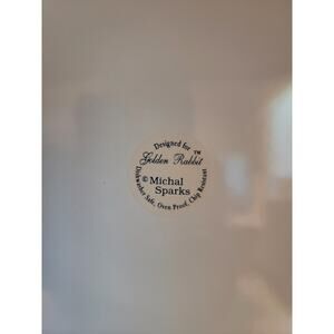 Golden Rabbit Blue Snowman Enamelware Collector Plate by Michael Sparks 12.5"