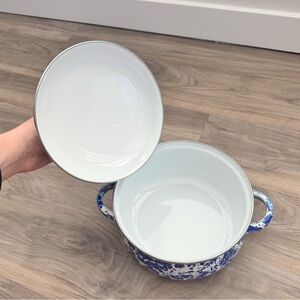 very lightweight 4qt capacity with enameled lid 9" diameter x 3.5" deep 6.5" tall with lid