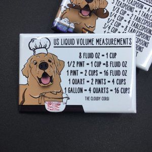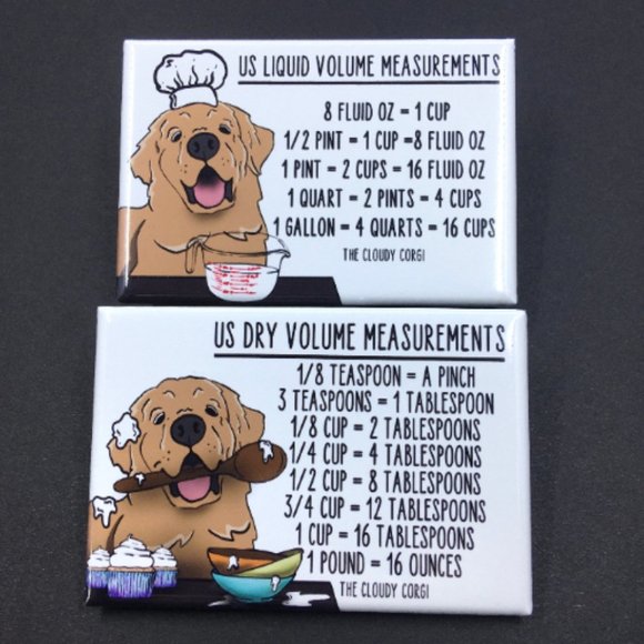 This handmade magnet set features hand illustrated dogs with handy conversion charts you can reference while cooking or baking!