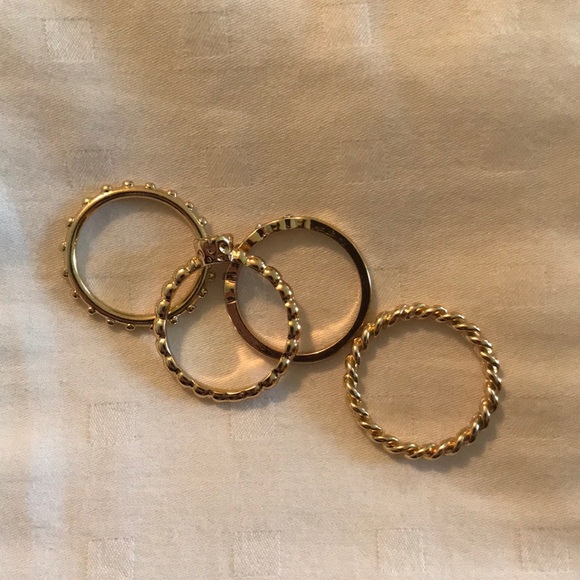 Four gold rings, in perfect condition, they look really nice together and are good for layering with other rings