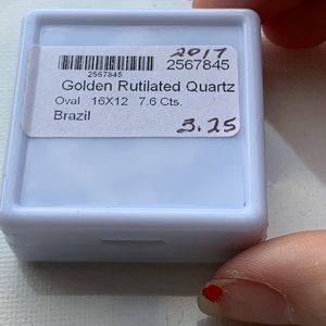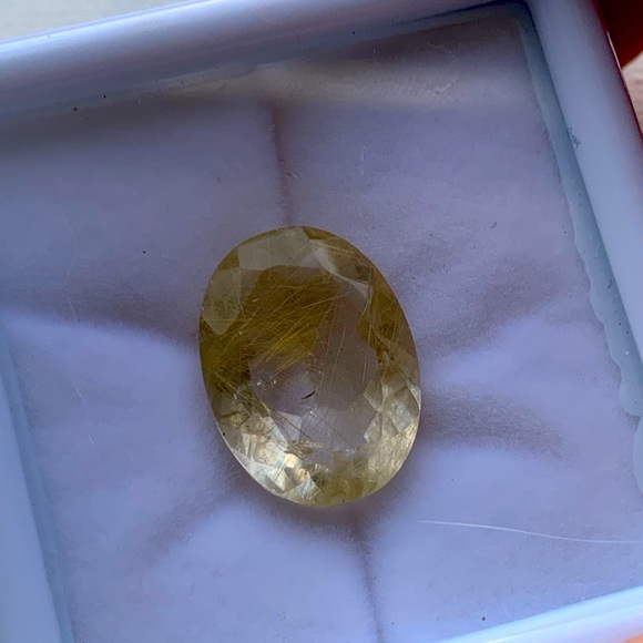 7.6 carats loose faceted gemstone of golden rutilated quartz mined from Brazil, comes in protective gem case!