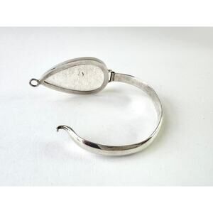 Large striking golden rutile quartz tear shaped cabochon bezel set into hand crafted sterling silver. Hinge on one side and latch hook for easy wear and security on the other side.