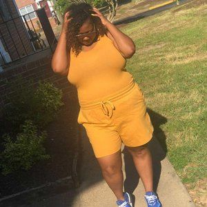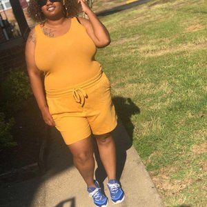 Set comes with Racer Back Rib Top and French Terry Shorts with pockets.