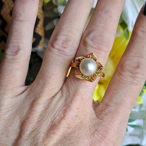 Golden South Sea Pearl & Multi-Tourmaline Flower Ring