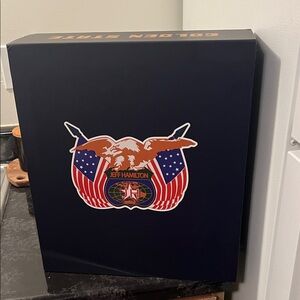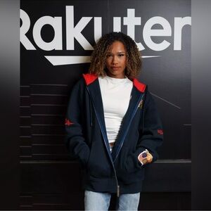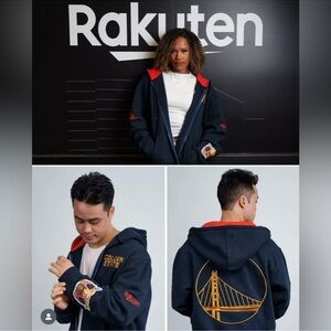 Limited edition Jeff Hamilton Golden State Warriors Rakuten hoodie. Features a bold eagle with American flag wings. Vibrant design with red, white, and blue accents. red hood. very soft and warm comes in original box perfect for any Warriors fan.
