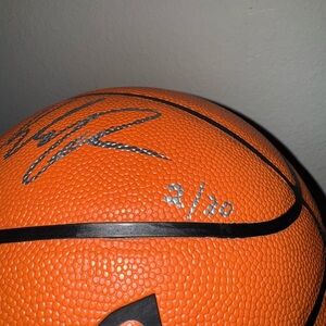 Spalding basketball with autographs. Encased in a glass display. Ideal for sports enthusiasts.