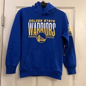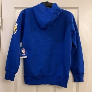 Blue hoodie featuring Golden State Warriors logo in yellow and white.