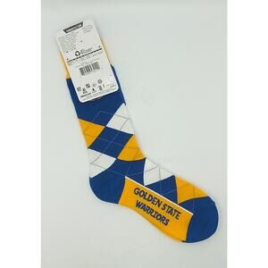 NWT. The Golden State Warriors For Bare Feet socks are a stylish way to show support for your favorite basketball team. Made from a combination of acrylic, stretch nylon, spandex, and rubber, these socks are durable and comfortable for all-day wear. The blue and yellow colors of the socks represent the team's colors, and they are designed for men in sizes 5-12 and women in sizes 6-11. Perfect for any Warriors fan looking to add some team spirit to their attire. Made in Taiwan, these socks are officially licensed by the NBA.