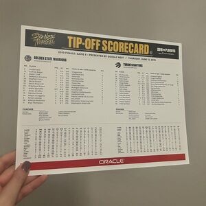 Golden State Warriors Round 4 Game 4 NBA Finals Playoffs Scorecard, 6/7/19- NEW