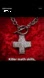 Silver hollow cross charm with lightly distressed cutout crosses on one side and 80 clear crystal gems on the other.