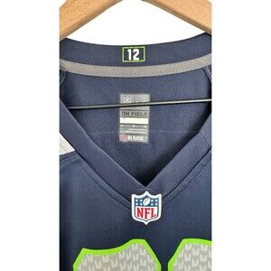 Golden Tate #81 Seattle Seahawks Nike stitched women's jersey in navy blue, size XL. It is officially licensed by the National Football League (NFL) and designed for regular season football fans. The jersey is made by Nike, ensuring high quality and authenticity for supporters of the Seattle Seahawks. Perfect for women who want to show their team spirit at games or during casual outings, this jersey combines style with the iconic team logo and colors.