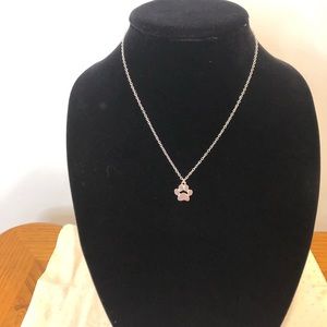 Paw print necklace in silver; great item for the pet lover in you or someone you know!