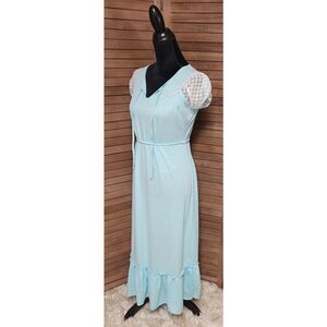 Golden Tower Vintage Night Gown Milk Maid Maxi Slip Dress Large Light Blue Lace