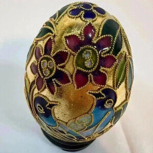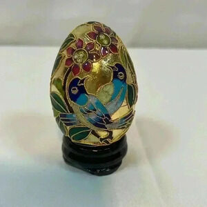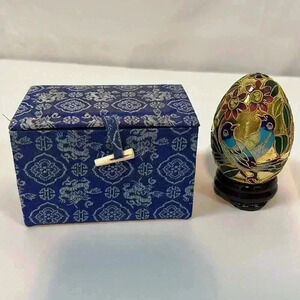 Golden Treasures Cloisonne Egg Hand Crafted Copper Floral Birds Stand Box