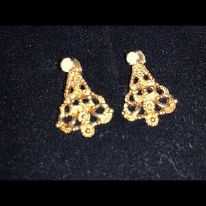 Golden Tree Pierced Earrings with a Decorative Crystal at the top