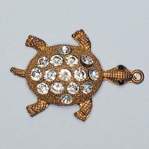 Golden Turtle Pendant, gold color, white rhinestone, shiny crystals details