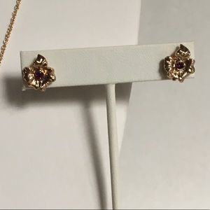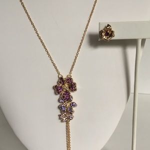 A set of three wildflowers with stunning lilac, purple, and amethyst stones with extending chain and small beads. Jewels also set in matching golden petal earrings. New in Box