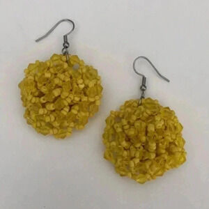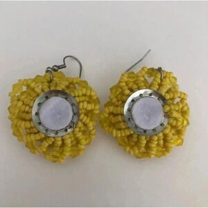 Golden Yellow Flower Seed Bead Handmade Drop Earrings