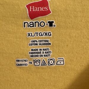 The product is a men's size XL T-shirt in a golden yellow color, featuring a graphic of a Shiner Bock beer. Made by Hanes, this regular fit T-shirt is designed for men and has a vibrant yellow color that will make a statement. Perfect for casual wear or showing off your love for beer in a playful way.