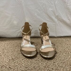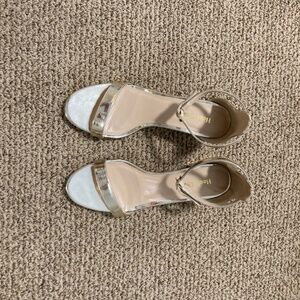 Women’s golden heels size 10 but fit 8-10, about a 2 inch heel