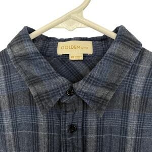 Golden by TNA Size XS Shirt Button Up Front Tunic Long Length Plaid Cotton Blue