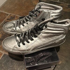 Golden goose slides in size 39. Silver limited edition color. Never worn. New in box.