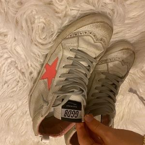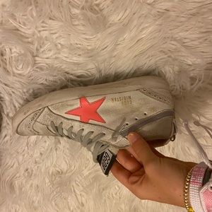 Super cute white and pink star golden gooses in great condition 💓 they are real I got them in the Manhattan store