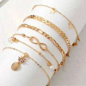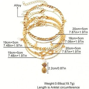 Golden pineapple 5 pcs faux pearl charm ankle bracelet