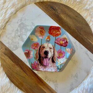 Golden retriever Art Floral Decoration mini Trinket Dish Brand new. Size 5”x6” Perfect to decorate that special place in your home, also to save your accesories
